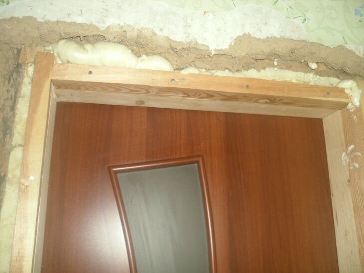 - Еще одним популярным способом отделки дверных откосов является монтаж на обрешетку. Все просто, на откос набивается обрешетка, а уже на обрешетку можно крепить все, что посчитаете нужным – пластик, МДФ, ГКЛ, фанеру, вагонку и т.д.