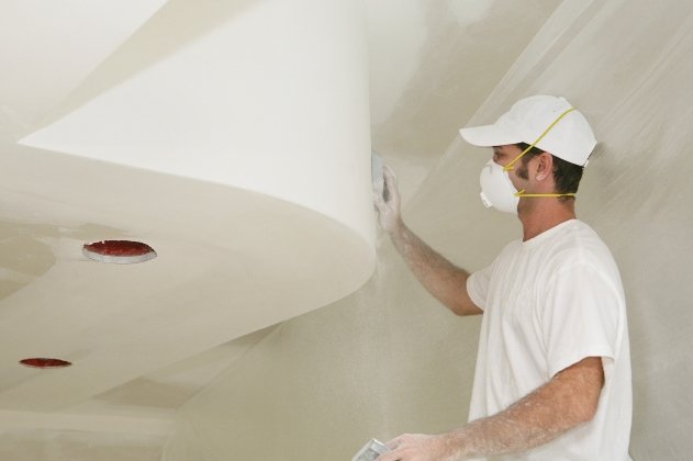 На этапе финишной отделки гипсокартонного карниза используйте респиратор для защиты органов дыхания от мелкой пыли.