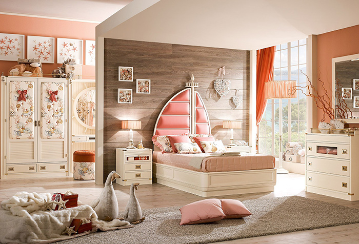 Комната ребенка – еще одно помещение, где шторы оранжевого цвета следует использовать с осторожностью. Яркие оттенки не подойдут для детской, где живет новорожденный. В комнату младенца нужно выбирать приглушенные, бледные тона оранжевого: персиковый, пудровый, абрикосовый. Более радостные и веселые оттенки уместны в детских малышей постарше и подростков.