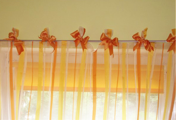 Наиболее удачно подобные шторы выглядят на кухне. В такое помещение впишется любой оттенок, начиная от апельсинового, заканчивая бронзовыми и медовыми оттенками. Идеально сочетаются апельсиновые тона с многочисленными фруктами в интерьере. Любая хозяйка будет с удовольствием проводить свободное время на такой стильной и одновременно яркой кухне.
