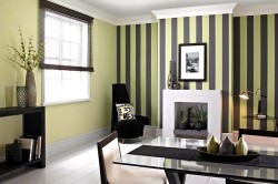 Существует способ вертикального и горизонтального оформления комнаты полосатыми обоями. При вертикальном сочетании обоев, полоски разных цветов могут чередоваться через одну, либо просто следовать небольшими вставками. При горизонтальном же сочетании стены обычно делятся на две зоны и оклеиваются двумя видами обоев, причем нижние обои стараются подбирать темнее, а верхние – светлее.