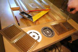 - Выпиливание сквозного отверстия для решетки с ориентацией на прочерченный внешний контур;