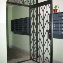 Решетчатые двери можно часто встретить в тамбурах подъездов многоэтажных жилых домов. Учитывая тот факт, что в данной части дома наблюдается существенный недостаток натурального освещения, двери вышеуказанного типа прекрасно подойдут. Это практичная и стильная альтернатива стандартным стальным дверям.