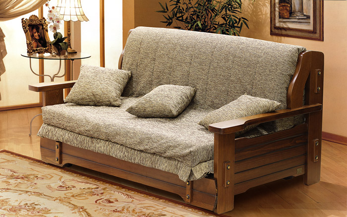 - итальянская раскладушка – раскладывается в два этапа: сначала спинка дивана наклоняется вперед и опирается на сиденье дивана, затем вся конструкция оборачивается вокруг своей оси и раскладывается.