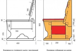 Для сиденья монтируется аналогичный каркас. Его отличие состоит лишь в том, что он не имеет скошенной части. По бокам пристраиваются подлокотники. Их следует прикрутить длинными шурупами в нескольких местах. Выдвижные ящики делаются бескаркасными. В качестве материала здесь также используются древесно-стружечные плиты. Чтобы оба ящика легко выдвигались, на стойках каркаса устанавливаются специальные механизмы.