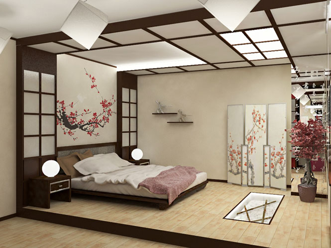 Внутренняя отделка спальни в японском стиле