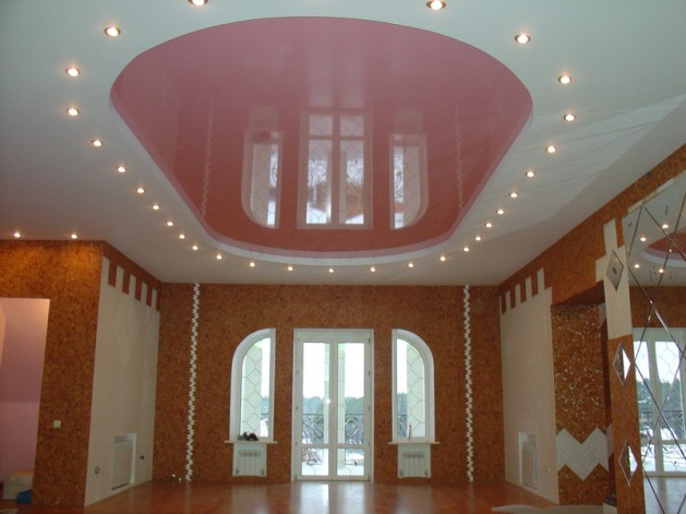 Идеально подойдут под цветную и монотонную облицовку потолка. Единственным ограничением является высокая мощность ламп, поэтому, если монтаж гипсокартона с натяжным полотном, то нужно будет увеличить расстояние между пластиком и лампой, иначе пластик постепенно оплавится.
