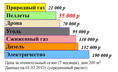 Если из перечисленного есть варианты сравнимые по стоимости, то точно не экологические. Что касается экономики, то если учесть, что цена килограмма сжиженного газа на момент 2017 года составляет около 30 рублей ( в среднем =0,5 доллара). Восьми месячный отопительный сезон для дома площадью в 150 метров кв. потребует от 3000 до 4000 килограмм.