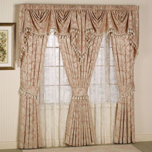 Занавеси в итальянском стиле идеально подходят для высоких, но не широких рам, так как они позволяют скорректировать форму проема, придав ему более короткую и широкую конфигурацию. Для этого нужно выбрать ткань, которая в верхней части рамы будет свободно ниспадать мягкими волнами.