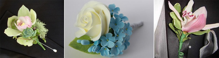 Оригинально смотрятся свадебная бижутерия из полимерной глины. Из этого материала мастера создают изящные и уникальные украшения. Так, цветы из полимерной глины издали сложно отличить от живых.