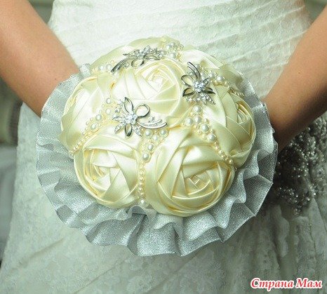 Букет — это основное украшение для невесты. Можно купить готовый букет, но увлекательней будет смастерить аксессуар самостоятельно из атласных лет. Ниже поэтапно расписан весь процесс изготовления букета.