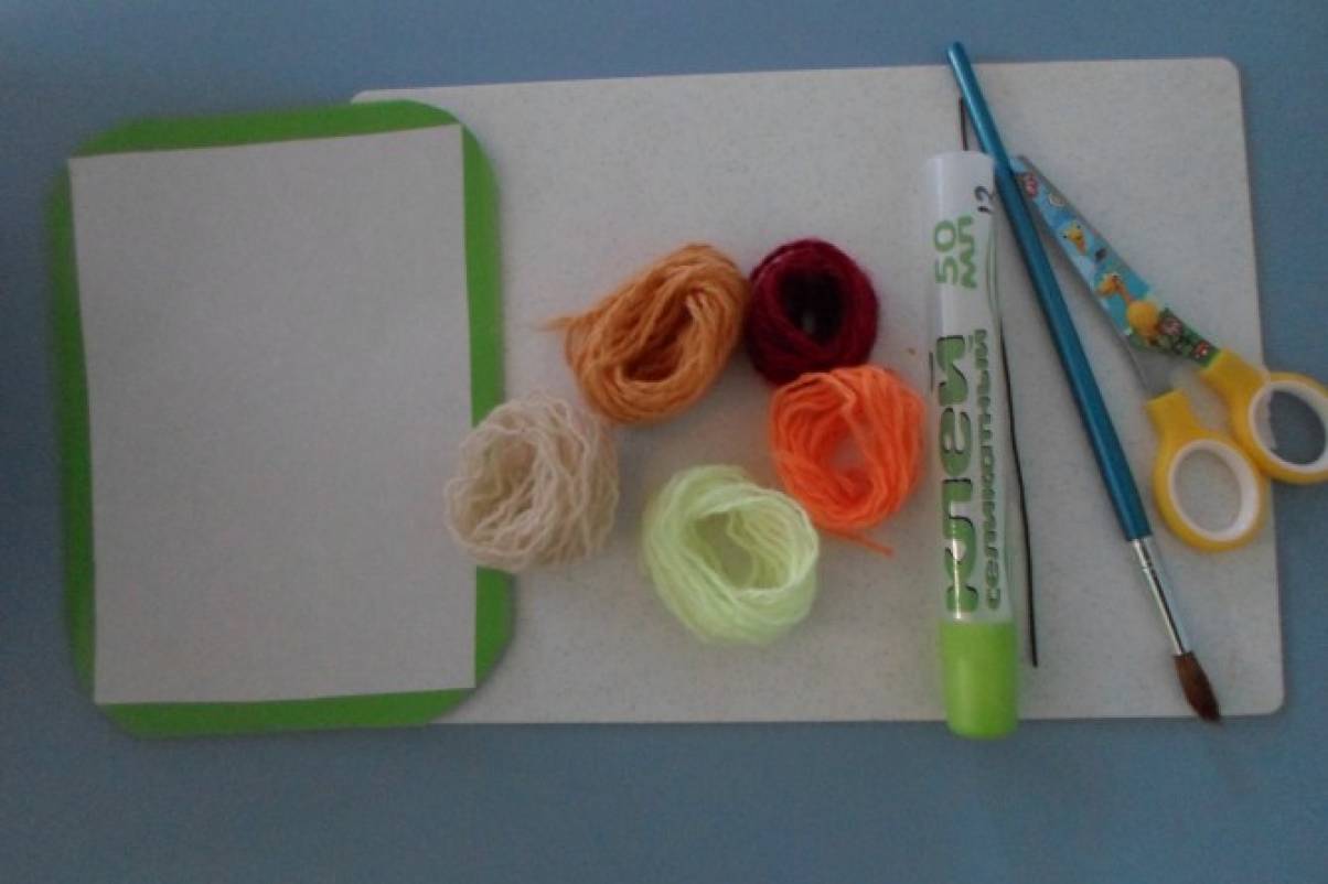 Аппликация из ниток на картоне для детского сада
