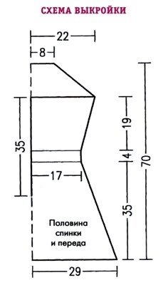 Платье вяжется основным узором по выкройке, показанной ниже: