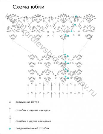 Далее вяжите подол платья вкруговую узором по схеме 2 до желаемой длины.