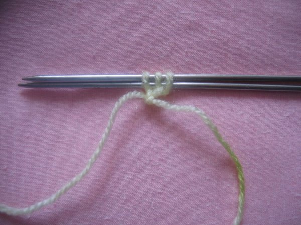 Начинают вязание бактуса с набора на спицы трех петель