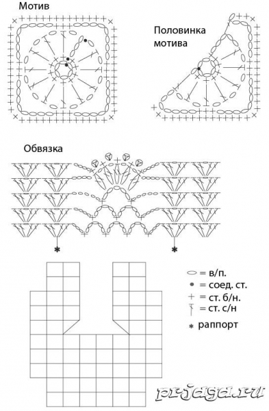 https://lazarenok.moy.su/MK_bolero/01.jpg2. Схема вязания спинки. Хочу напомнить что у разных рукодельниц при использовании одного и того же набора пряжи, крючков, схем могут получиться изделия разного размера. Это зависит от плотности вязки, от фирмы производителя крючков/спиц, поэтому сравнивайте ваше изделие не только с приложенным описанием, но и с размером выкройки.