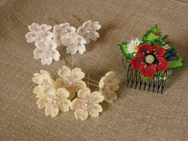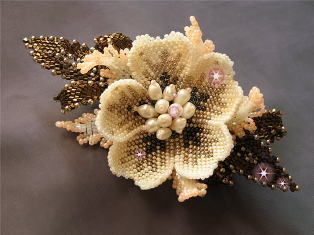 Таким образом, мы создали оригинальную заколку из бисера. Проявив немного фантазии, из вышеописанных частей цветка можно создавать разнообразные цветочные растения, не похожие на предыдущие, делая изготавливающиеся заколки уникальными. Хороших Вам творений!