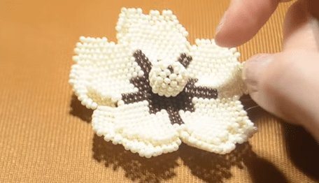 - Сплетите 10–12 лепестков с помощью параллельной техники, используя бисер белого цвета.