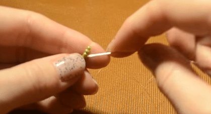 - Протяните проволоку через самую первую бисерину и затяните.