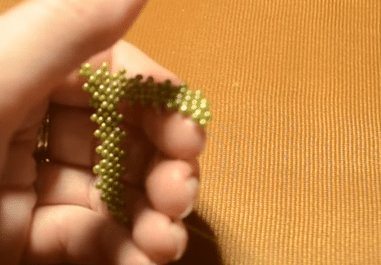 - Таким же способом сплетите ещё по два ряда с каждой стороны используя по 8 бисеринок.