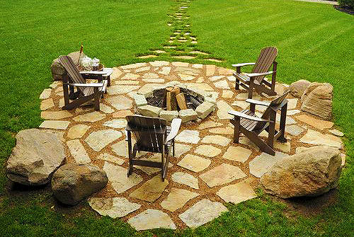 Идея с мощением камнем плитняком и очагом в центре участка, по моему мнению, несколько проста, здесь не хватает каких-то визуальных ограждений, ширмочек, клумб или кустарников. Предлагаю рассматривать данную идею как базис, с которым следует еще работать.