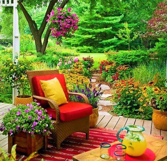 Друзья, позвольте предложить вашему вниманию теплые летние идеи организации дизайна на даче. В рамках сегодняшней подборки мы остановимся на вариантах оформления уголков отдыха, патио, площадок для релакса. Сейчас, в эти январские дни, всем нам не хватает ярких сочных цветов, погружающих нас в летнее тепло и негу.