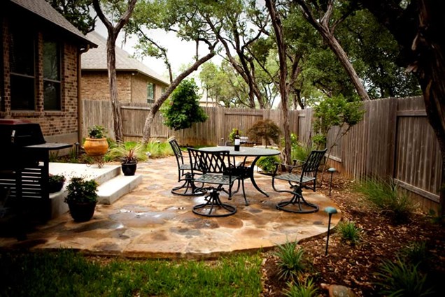Площадка под патио может быть разной — и бетонной, и мощеной, и деревянной. Ваш выбор следует соотносить с общей концепцией дизайна дачи.