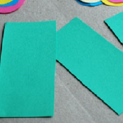 Теперь берем бумагу зеленого цвета и вырезаем три прямоугольных детали.