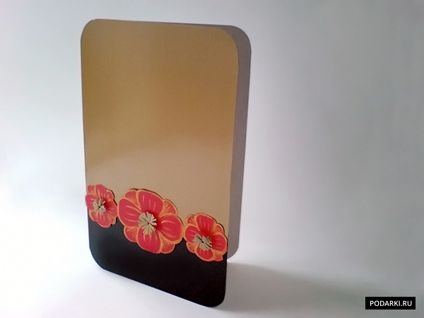 Очень ярко и празднично смотрятся гвоздики на объёмной открытке: