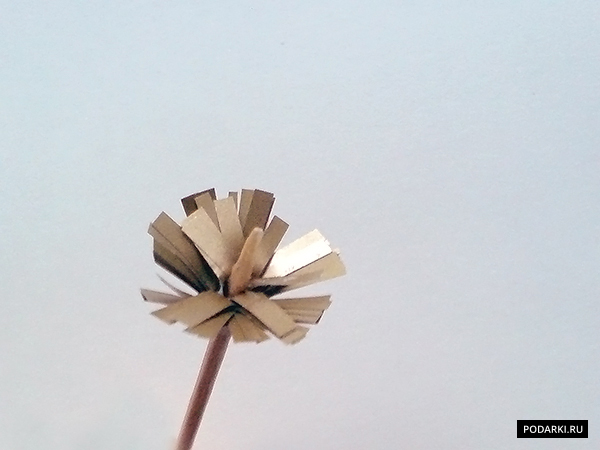 Осторожно снимаем получившуюся сердцевину и клеим ее в середину цветов.