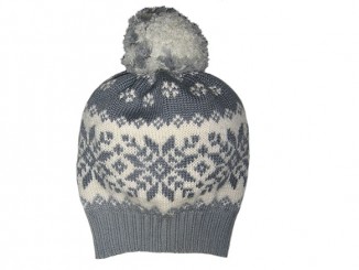 Серая шапка с жаккардовым узором «Снежинки» спицами