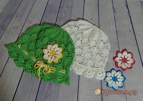 Схема вязания красивой ажурной летней шапочки с цветками крючком