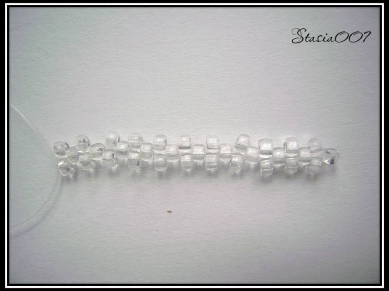 2.Набираем 21 бисерину и спускаем их в конец лески: