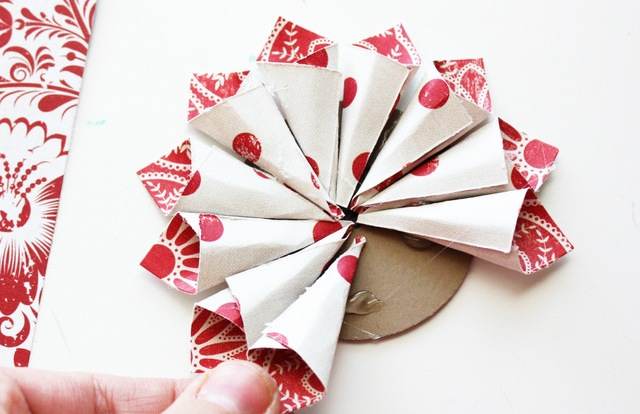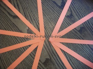 Далее нужно разложить вырезанные полоски в виде солнца и основание каждой закрепить проволокой.