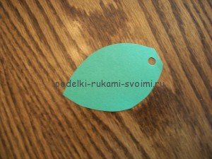 Завершающей деталью будет зеленый листик, в котором также нужно сделать место для крепления.
