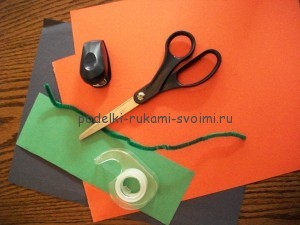 Можно использовать белую бумагу, раскрашенную в оранжевый и зеленый цвета или изготовить поделку из цветной бумаги. Вместо клея для закрепления деталей будем использовать скотч и проволоку.