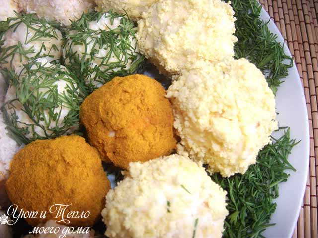 Другой вариант сырных «Рафаэлло» смотрится фантастически аппетитно и празднично.