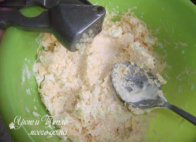 Для основы сырных шариков необходимо приготовить сырную массу, в состав которой войдут: