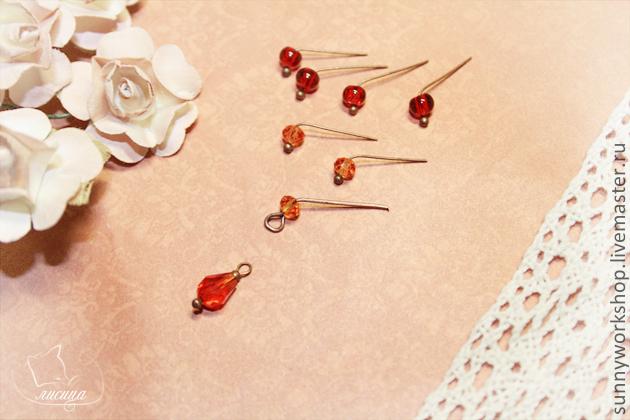 Вся выбранная мной фурнитура медного цвета, который, как мне кажется, лучше всего подходит к красно-оранжевой гамме украшений.