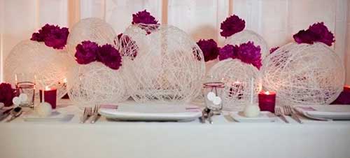 Не нужно делать их много – если вы выбрали европейскую систему расстановки столов, поставьте на каждый стол по одной композиции, а если – традиционный вариант – общий стол, то расставьте несколько таких композиций по центральной линии стола.