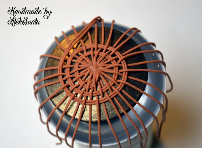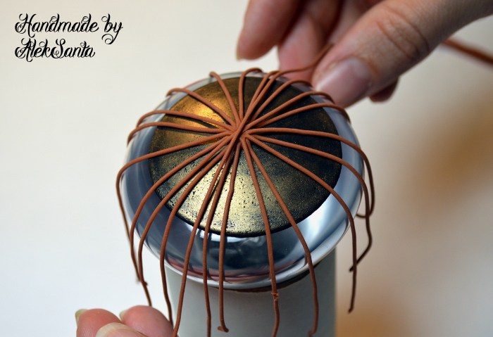 Обклеиваем всю конструкцию тонко раскатанной черной полимерной глиной.