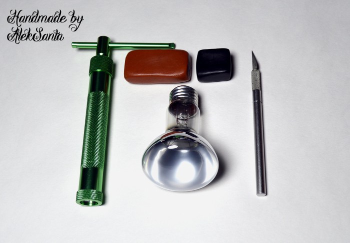 – Полимерная глина черного, желтого, оранжевого, голубого и зеленого цветов