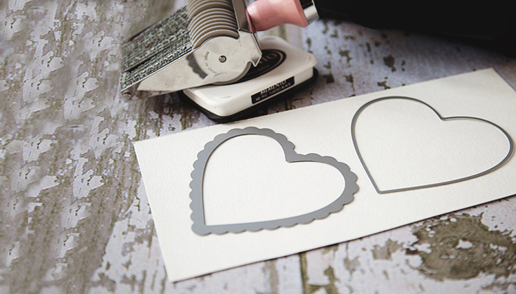 Внутри большого сердца нарисуйте меньшее и вырежьте его резаком для бумаг. У вас должна получиться картонная основа шириной меньше 1 см.