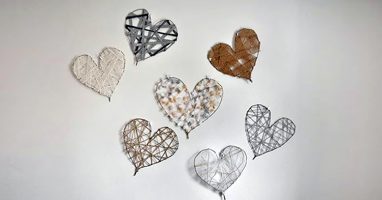 Обматываем кольцо-сердце шерстяными нитками, закрепив кончики клеем.