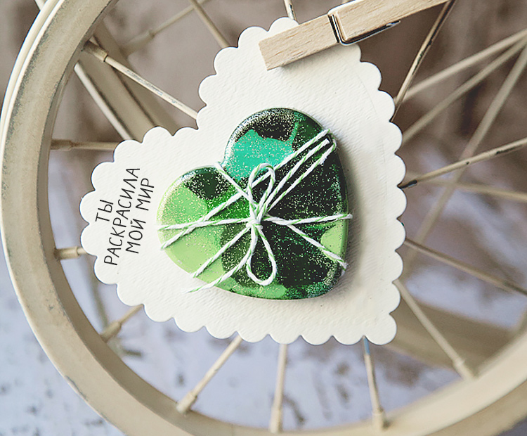 - После того, как вся композиция будет собрана, смазываем клеем, остатки убираем салфеткой и даем время сердечку высохнуть.