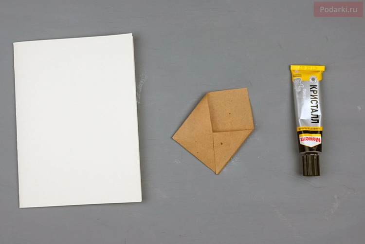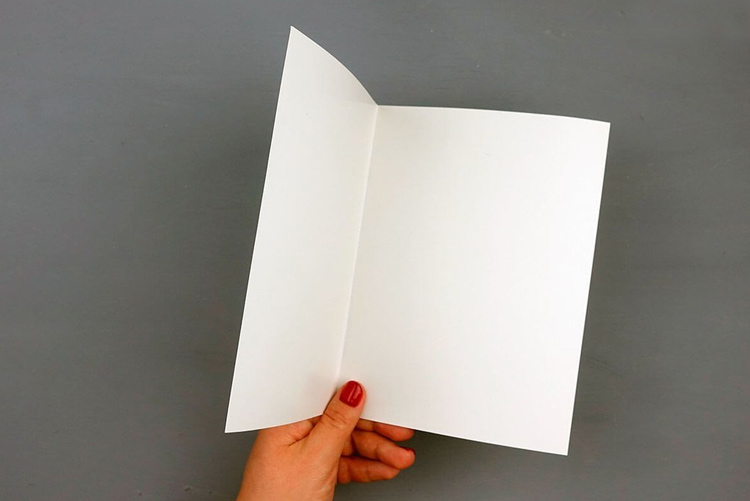 - Берем лист картона, складываем пополам и вот основа для открытки готова.