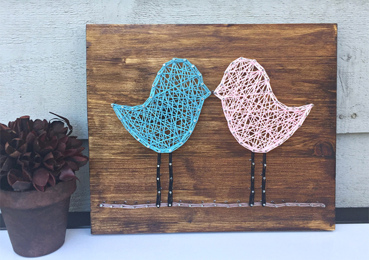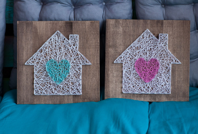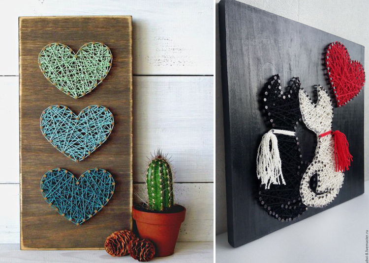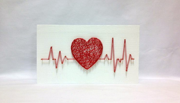 Чтобы придать картине яркость можно использовать нити разных цветов и чем больше нитей, тем объемнее получится сердце.