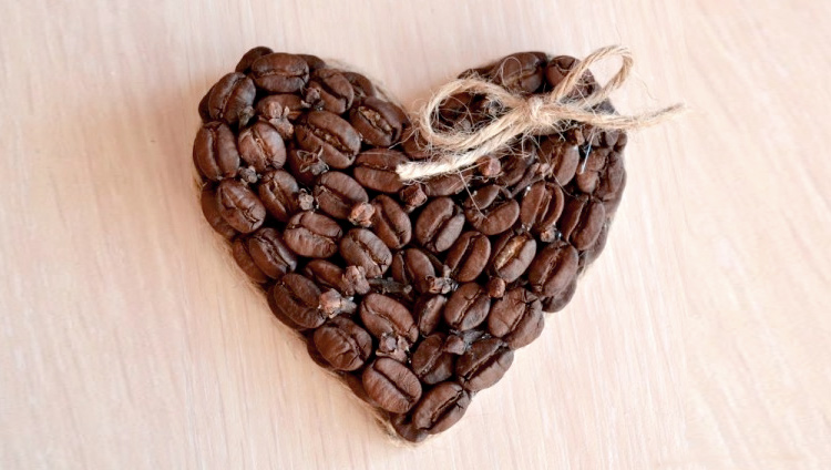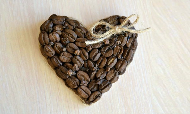 Валентинка из кофейных зерен