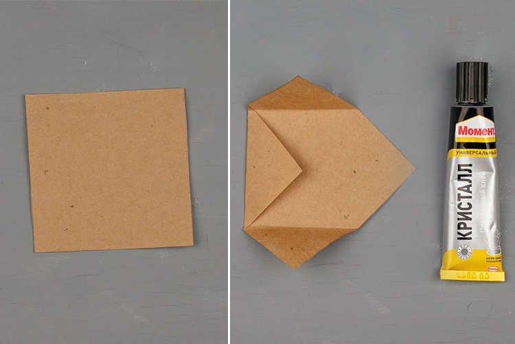 - Из цветной бумаги вырезаем 6 одинаковых по размерам квадратиков и делаем из них конвертики, приклеиваем на картон любого цвета.