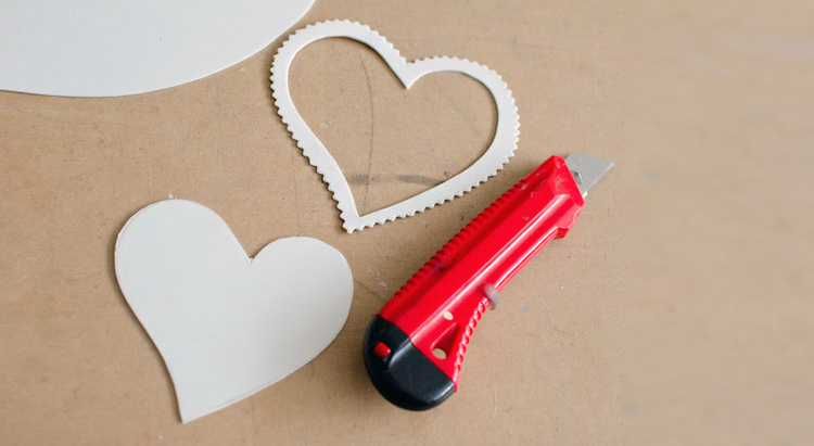 - Внутри вырезанного сердечка рисуем еще одно сердце и снова вырезаем, но уже используем канцелярский нож.